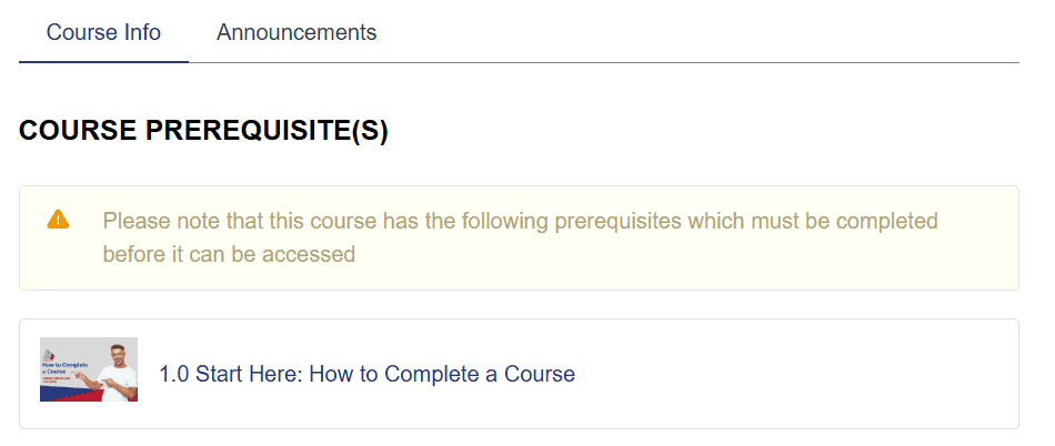 Each course houses a prerequisite course that must be completed before you can begin the course.